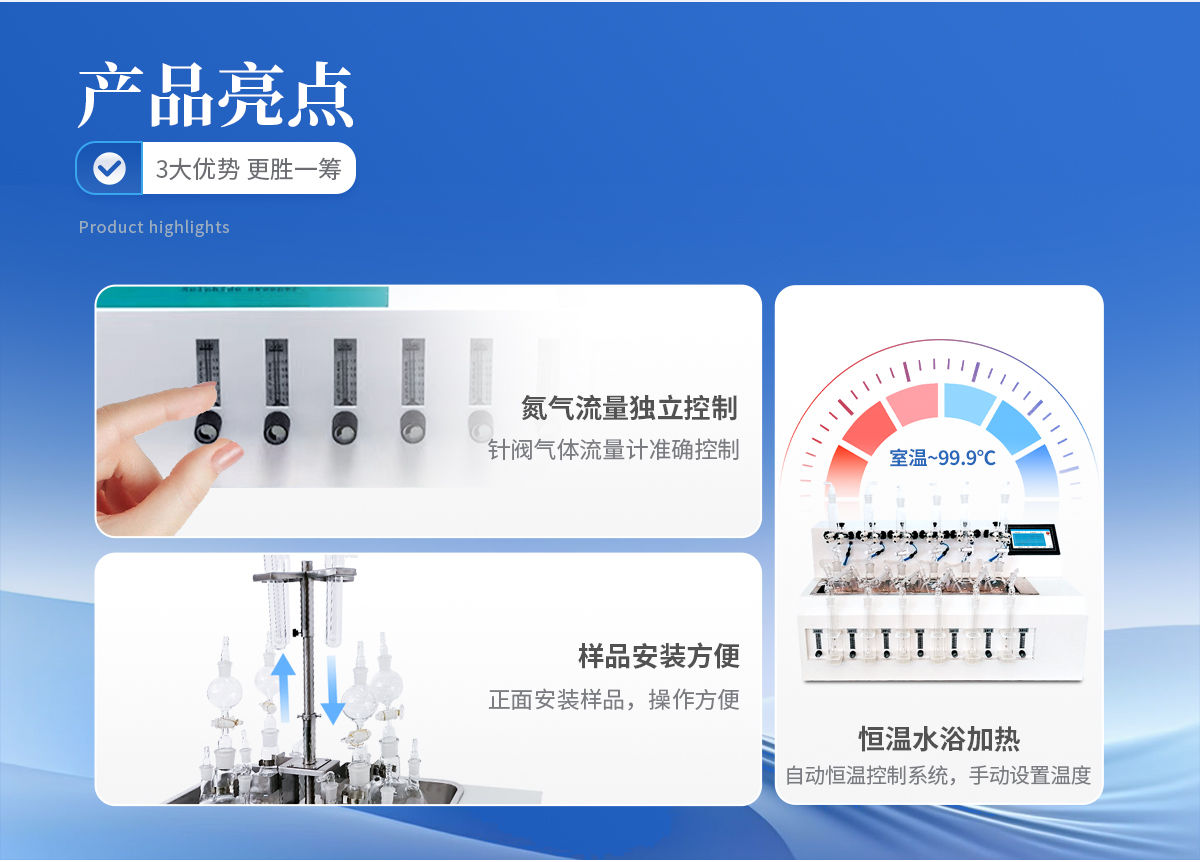 1、大容量反應(yīng)瓶,可同時(shí)處理多個(gè)樣品。 2、鹽酸口、氣體進(jìn)口、出口三口一體且相互獨(dú)立,操作會(huì)不干擾。 3、恒溫水浴加熱,具有快速自動(dòng)恒溫控制系統(tǒng),加熱溫度可以手動(dòng)設(shè)定。 4、由升降位置固定旋鈕調(diào)節(jié)樣品架及配氣系統(tǒng)的升降旋轉(zhuǎn)樣品架,正面安裝樣品,操作方便。 5、每個(gè)樣品的氮?dú)饬髁开?dú)立控制調(diào)節(jié)或關(guān)閉,針閥氣體流量計(jì)準(zhǔn)確控制和顯示氣體總消耗量。
