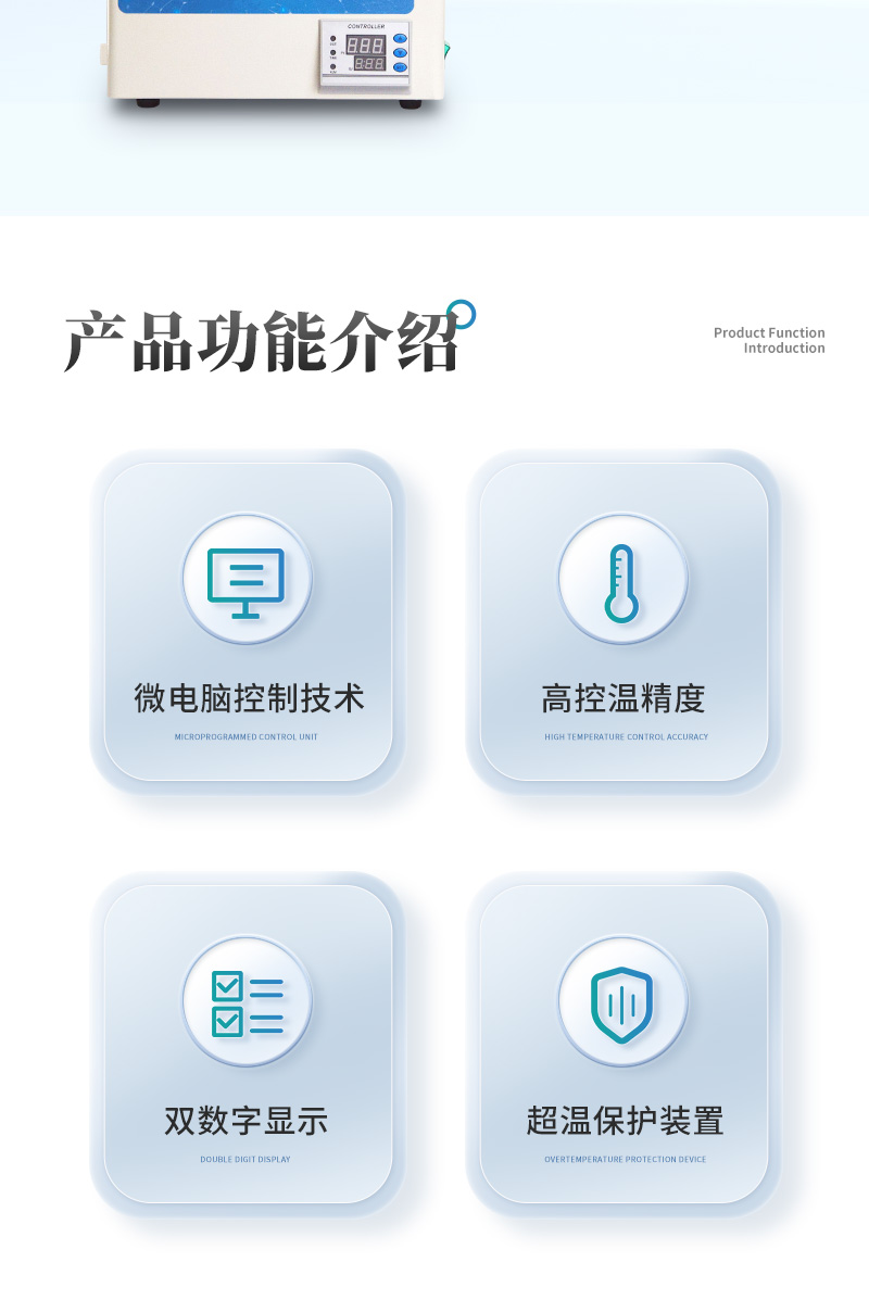 6、儀器有LED顯示屏,溫度同步顯示、時(shí)間遞減顯示,可時(shí)時(shí)觀察溫度變化。