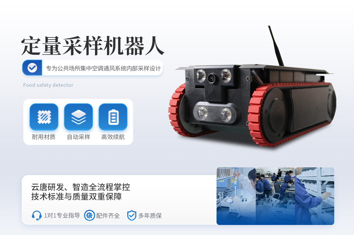 定量采樣機(jī)器人是一款專(zhuān)為公共場(chǎng)所集中空調(diào)通風(fēng)系統(tǒng)內(nèi)部采樣設(shè)計(jì)的高精度、便攜式智能設(shè)備。該產(chǎn)品嚴(yán)格按照《WS 10013-2023公共場(chǎng)所集中空調(diào)通風(fēng)系統(tǒng)衛(wèi)生規(guī)范》、《WS/T 10004-2023公共場(chǎng)所集中空調(diào)通風(fēng)系統(tǒng)衛(wèi)生學(xué)評(píng)價(jià)規(guī)范》以及《GB 37488-2019公共場(chǎng)所衛(wèi)生指標(biāo)及限值要求》中的相關(guān)標(biāo)準(zhǔn)進(jìn)行設(shè)計(jì)與制造,確保了其在各種工業(yè)環(huán)境下的穩(wěn)定性和可靠性。它采用了**的航空鋁合金材料,結(jié)合了**的移動(dòng)性能與卓越的采樣技術(shù),能夠滿(mǎn)足多種行業(yè)的通風(fēng)管道檢測(cè)和維護(hù)工作需求。
