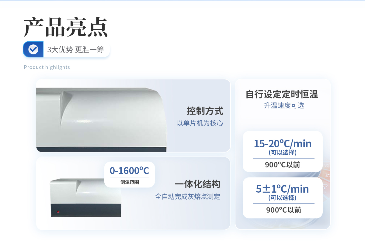灰熔點測試儀與硅碳管高溫爐配套,是化驗室進行煤灰熔融性測定的智能化儀器.該儀器嚴格按照國標有關規(guī)定全自動完成灰熔點測定.可以在一定范圍內對控制參數(shù)進行選擇和修改,還具備可以自行設定是定時恒溫程序和標準RS232通訊功能.