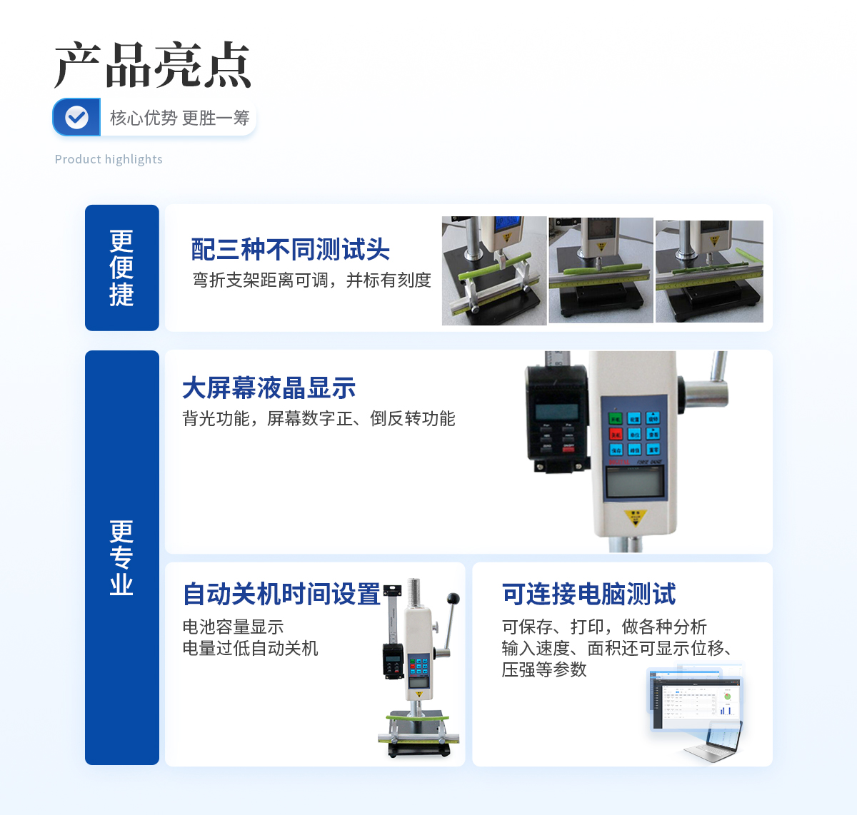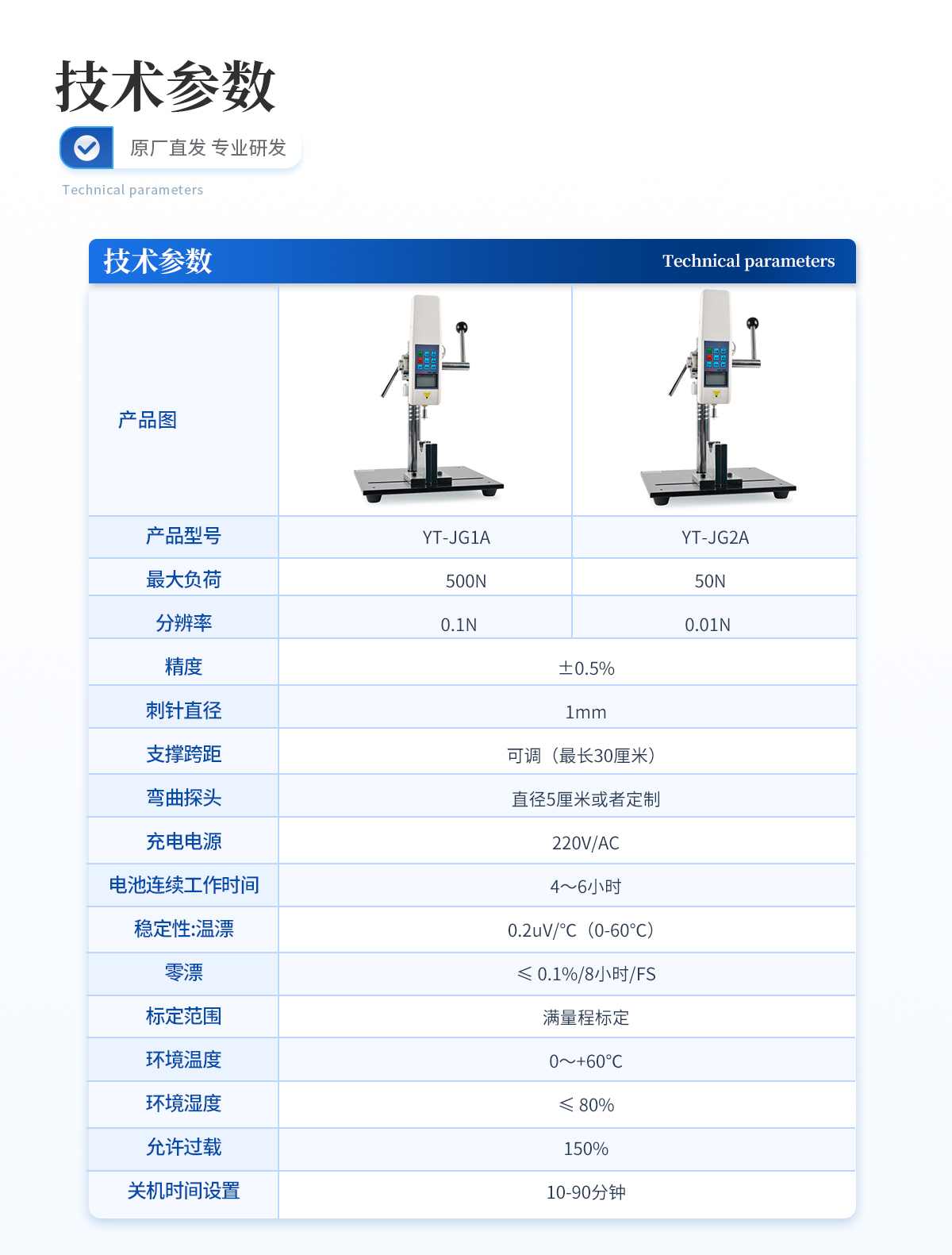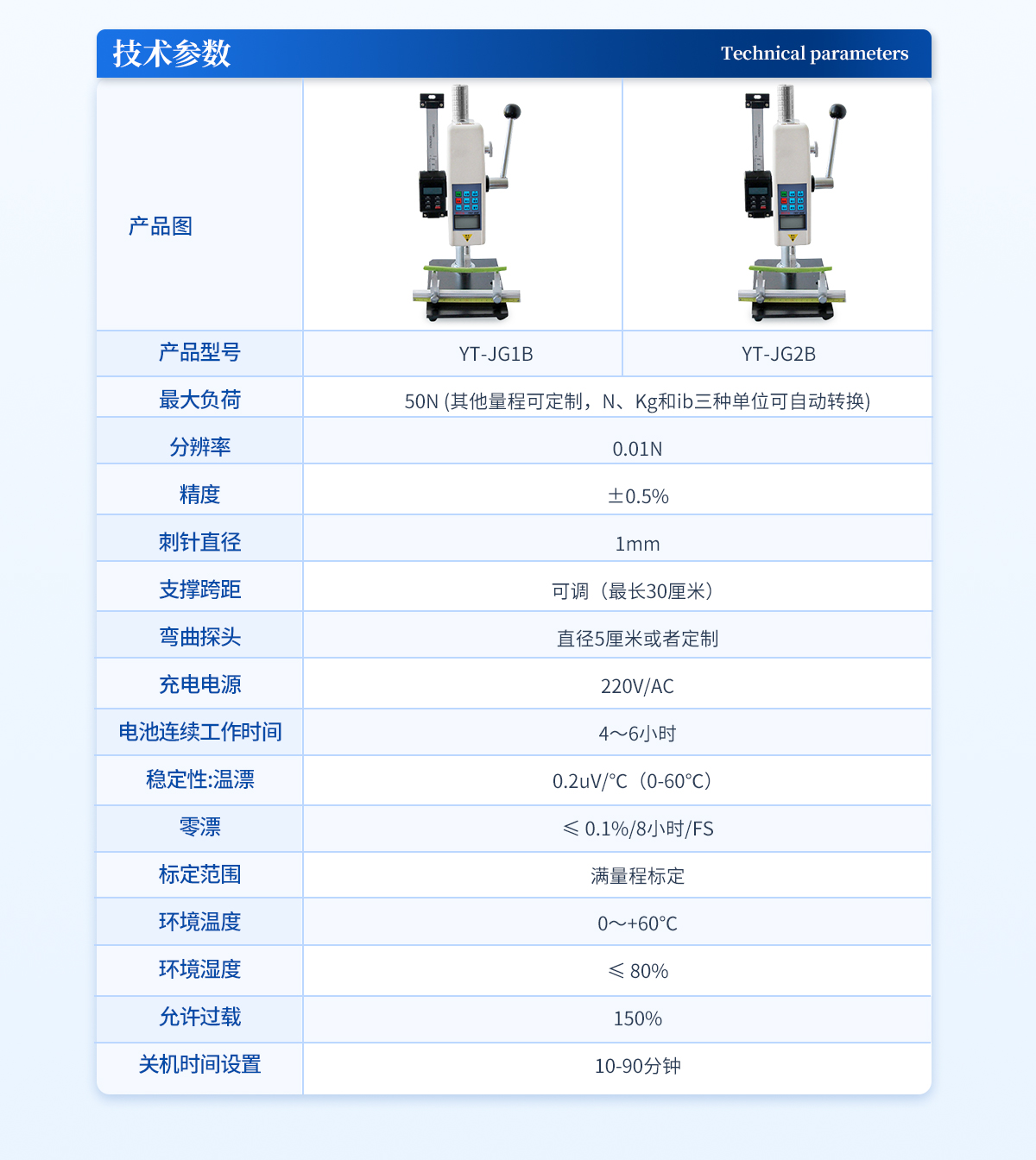| **負(fù)荷:500N (其他量程可定制,N、Kg和ib三種單位可自動(dòng)轉(zhuǎn)換) | 分辨率:0.1N | 精度:±0.5%; | 刺針直徑:1mm | 支撐跨距:可調(diào)(*長(zhǎng)30厘米) | 彎曲探頭:直徑5厘米或者定制 | 充電電源:220V/AC; | 電池連續(xù)工作時(shí)間:4~6小時(shí); | 穩(wěn)定性:溫漂:0.2uV/℃(0-60℃); | 零漂:≤ 0.1%/8小時(shí)/FS; | 標(biāo)定范圍:滿(mǎn)量程標(biāo)定; | 環(huán)境溫度:0~+60℃; | 環(huán)境濕度:≤ 80%; | 允許過(guò)載:150%; | 關(guān)機(jī)時(shí)間設(shè)置:10-90分鐘。 |