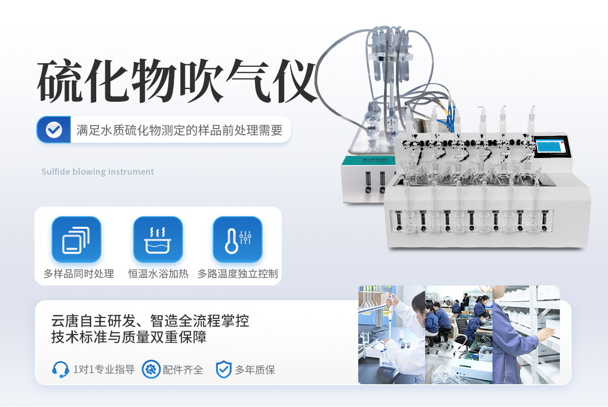 水質(zhì)硫化物酸化吹氣儀根據(jù)水質(zhì)硫化物的測定-亞甲基藍(lán)分光光度法(碘量法)標(biāo)準(zhǔn)開發(fā)生產(chǎn)的。滿足水質(zhì)硫化物測定的樣品前處理需要。