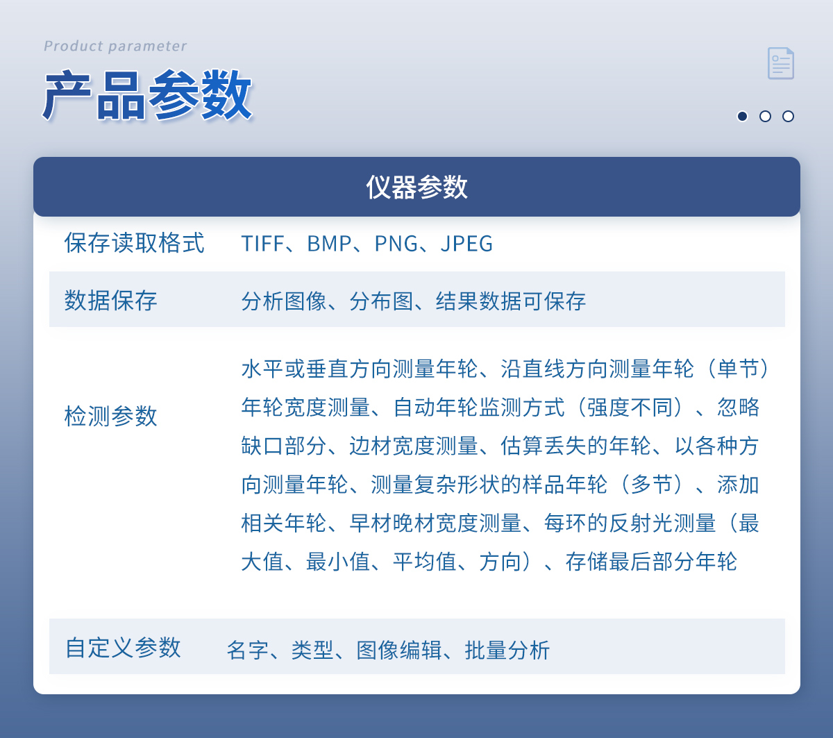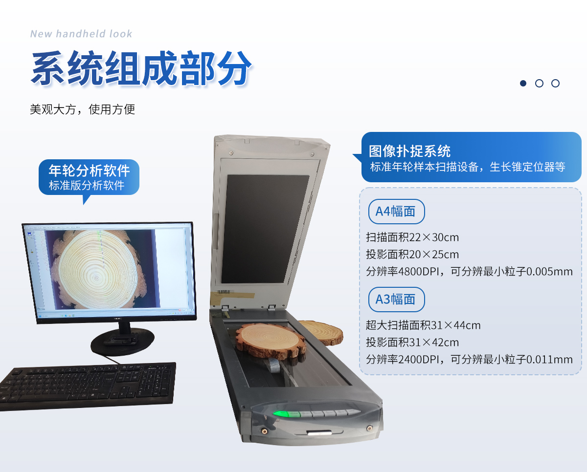 圖像撲捉系統(tǒng):標(biāo)準(zhǔn)年輪樣本掃描設(shè)備,生長錐定位器等。 A4幅面:掃描面積22×30cm,投影面積20×25cm,分辨率4800DPI,可分辨*小粒子0.005mm A3幅面:超大掃描面積31×44cm,投影面積31×42cm,分辨率2400DPI,可分辨*小粒子0.011mm 年輪分析軟件:標(biāo)準(zhǔn)版分析軟件。
