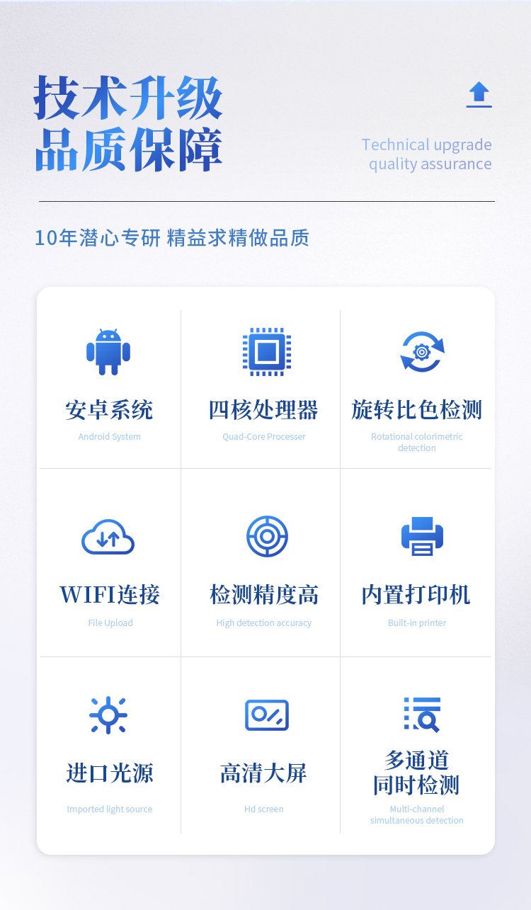 1、安卓智能操作系統(tǒng),采用更加**和人性化操作,儀器具有無線聯(lián)網(wǎng)上傳功能,快速上傳數(shù)據(jù),進(jìn)行數(shù)據(jù)統(tǒng)計(jì)和分析。