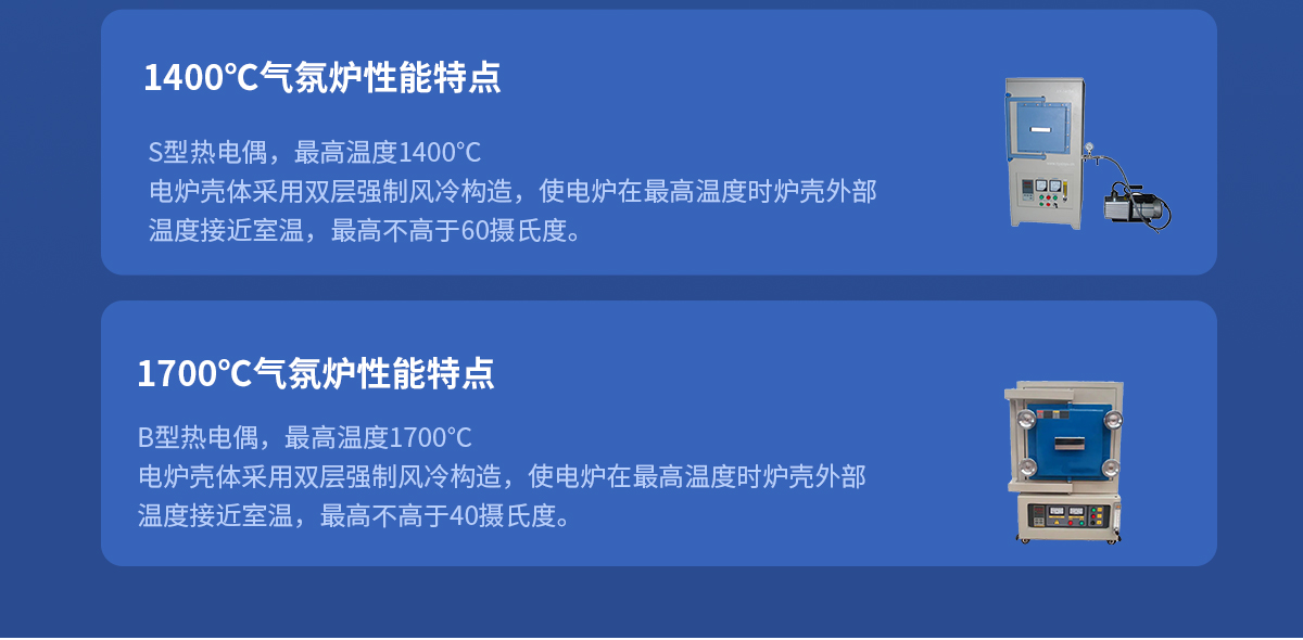 電爐殼體采用雙層強(qiáng)制風(fēng)冷構(gòu)造,使電爐在**溫度時(shí)爐殼外部溫度接近室溫,**不高于60攝氏度。