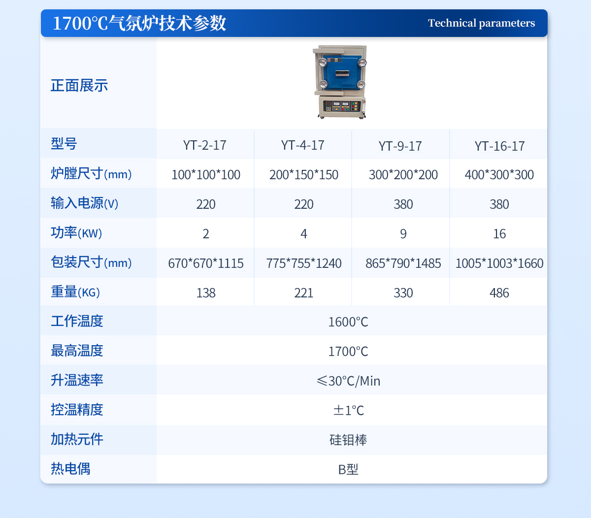 | 型號(hào) | 爐膛尺寸(深寬高) | 電壓(v) | 功率(kw) | 外形尺寸 (深寬高) | 包裝尺寸+重量 |