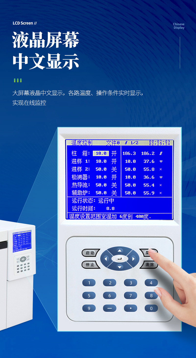 ● 中、英文切換顯示技術(shù),5.7寸液晶大屏幕(320*240)。多達(dá)20個顯示界面,信息量豐富,可儲存20套色譜分析數(shù)據(jù),并可隨時調(diào)用。