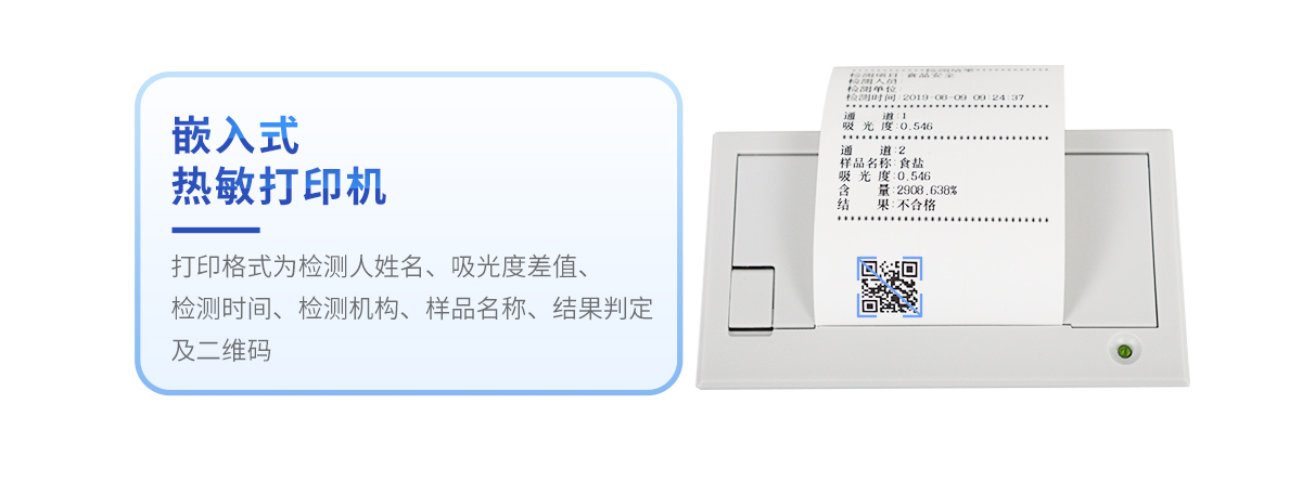5、配備新一代嵌入式熱敏打印機,可選擇手動打印或者自動打印,檢測完成可自動打印檢測報告和二維碼。