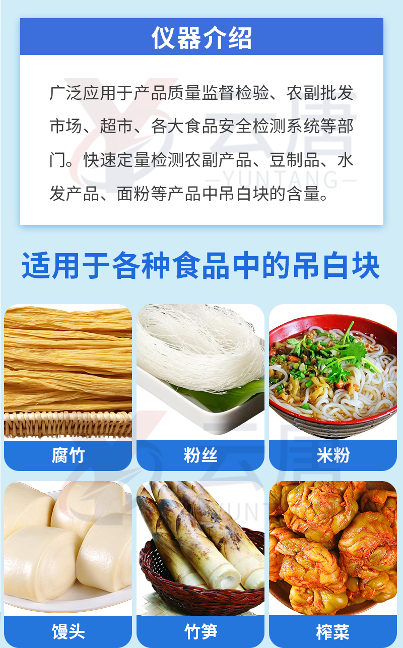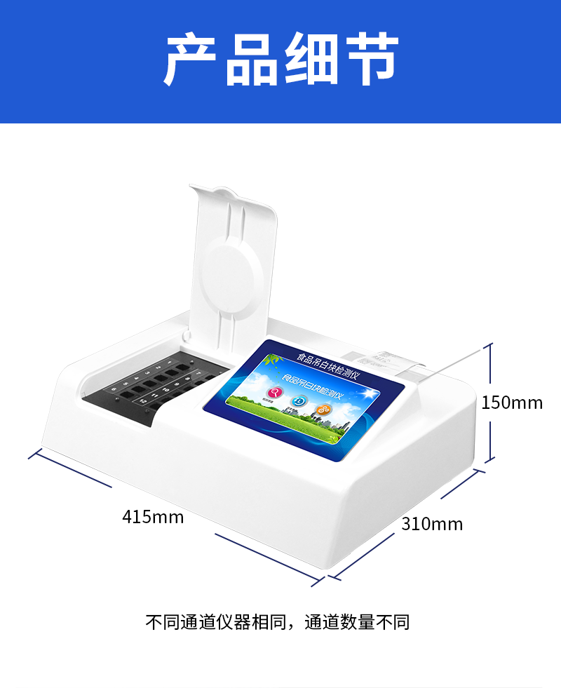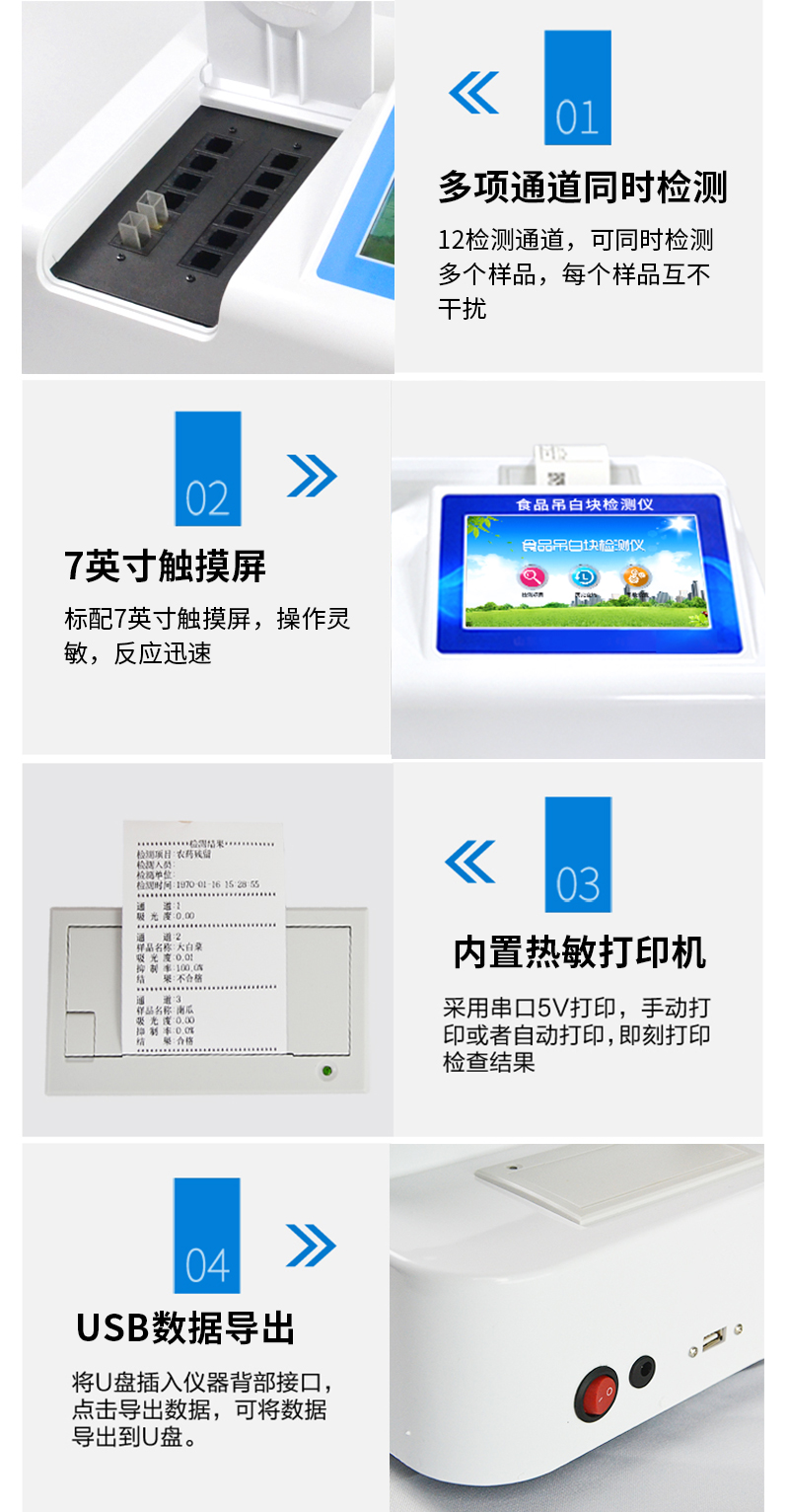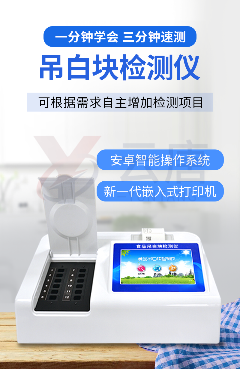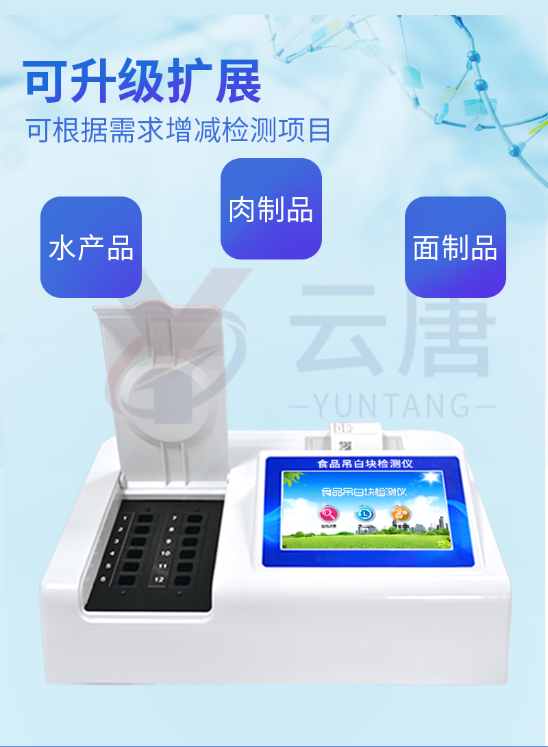 1、 檢測(cè)項(xiàng)目:用于快速檢測(cè)食品中吊白塊,儀器預(yù)留其他項(xiàng)目檢測(cè)程序和端口,根據(jù)日后需求可方便的自主增加檢測(cè)項(xiàng)目。日后可升級(jí)為檢測(cè),水產(chǎn)品,肉制品,面制品的綜合類型儀器。