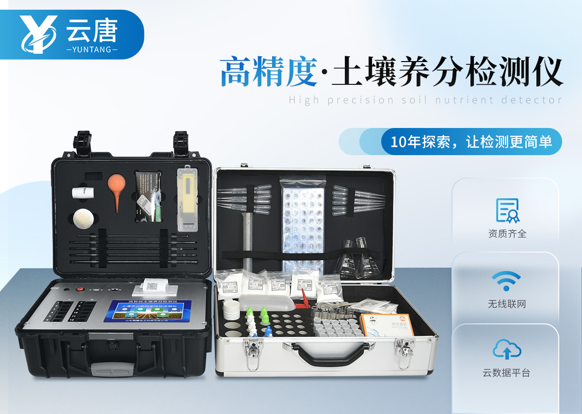 配套齊全:該儀器集藥、器、儀為一體,攜帶方便,相當(dāng)于一個(gè)小型移動實(shí)驗(yàn)室,無需用戶自配附件,亦可靈活野外流動測試。適于農(nóng)業(yè)服務(wù)部門或農(nóng)資經(jīng)銷商、合作社、肥料廠商、大種植戶測土施肥。