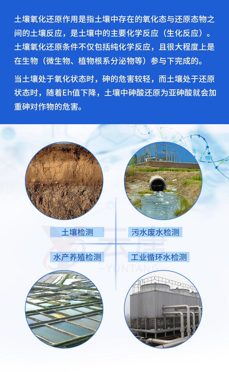 YT-QX6530型智能便攜式氧化還原電位測定儀是一種適用于對土壤和水(介質(zhì))Eh、mV、pH測量的便攜式儀器,可測量氧化還原電位(Eh)、mV、pH和溫度。由于采用了微電腦處理器,所以該儀器具有操作簡便,測量精度高,可靠性好等優(yōu)點,可廣泛應(yīng)用于環(huán)境保護(hù)對土壤、污水,廢水的檢測,水產(chǎn)養(yǎng)殖對水質(zhì)的監(jiān)測,以及工業(yè)循環(huán)水對水質(zhì)的監(jiān)控檢測。