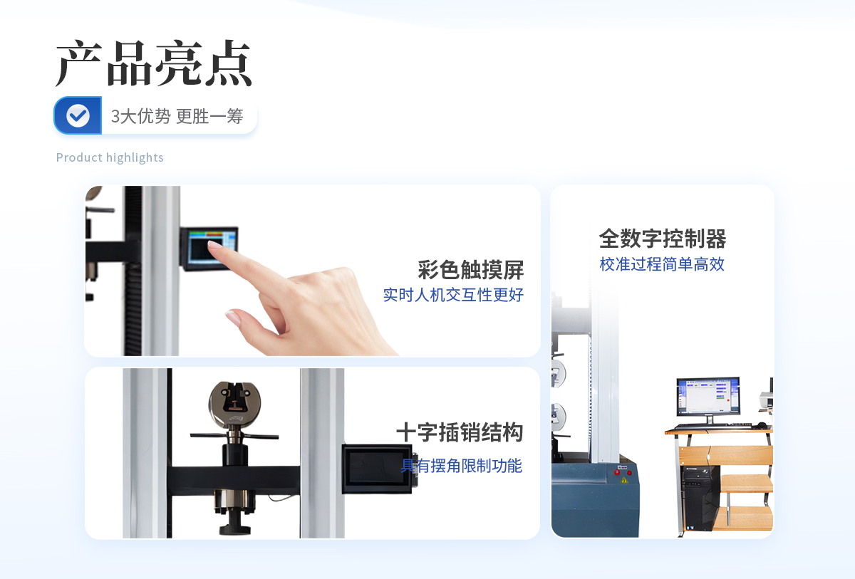 該系列萬能試驗(yàn)機(jī)適用于橡膠、塑料、紡織物、防水材料、電線電纜、網(wǎng)繩、金屬絲、金屬棒、金屬板、各種金屬、非金屬及復(fù)合材料的力學(xué)性能指標(biāo)的測(cè)試,如各種拉伸試驗(yàn),通過更改附具便可輕松完成壓縮、彎曲、剪切、撕裂、剝離、穿刺等試驗(yàn)。7寸TFT彩色觸摸屏,直接輸入試驗(yàn)參數(shù),中英文操作界面層層提示,用戶無需操作手冊(cè)即可輕松操作。本拉力試驗(yàn)機(jī)具有試驗(yàn)力數(shù)字顯示,試驗(yàn)速度連續(xù)可調(diào),試樣拉斷自動(dòng)停機(jī),峰值保持等功能,試驗(yàn)結(jié)果完全符合國(guó)家相關(guān)標(biāo)準(zhǔn)的要求。